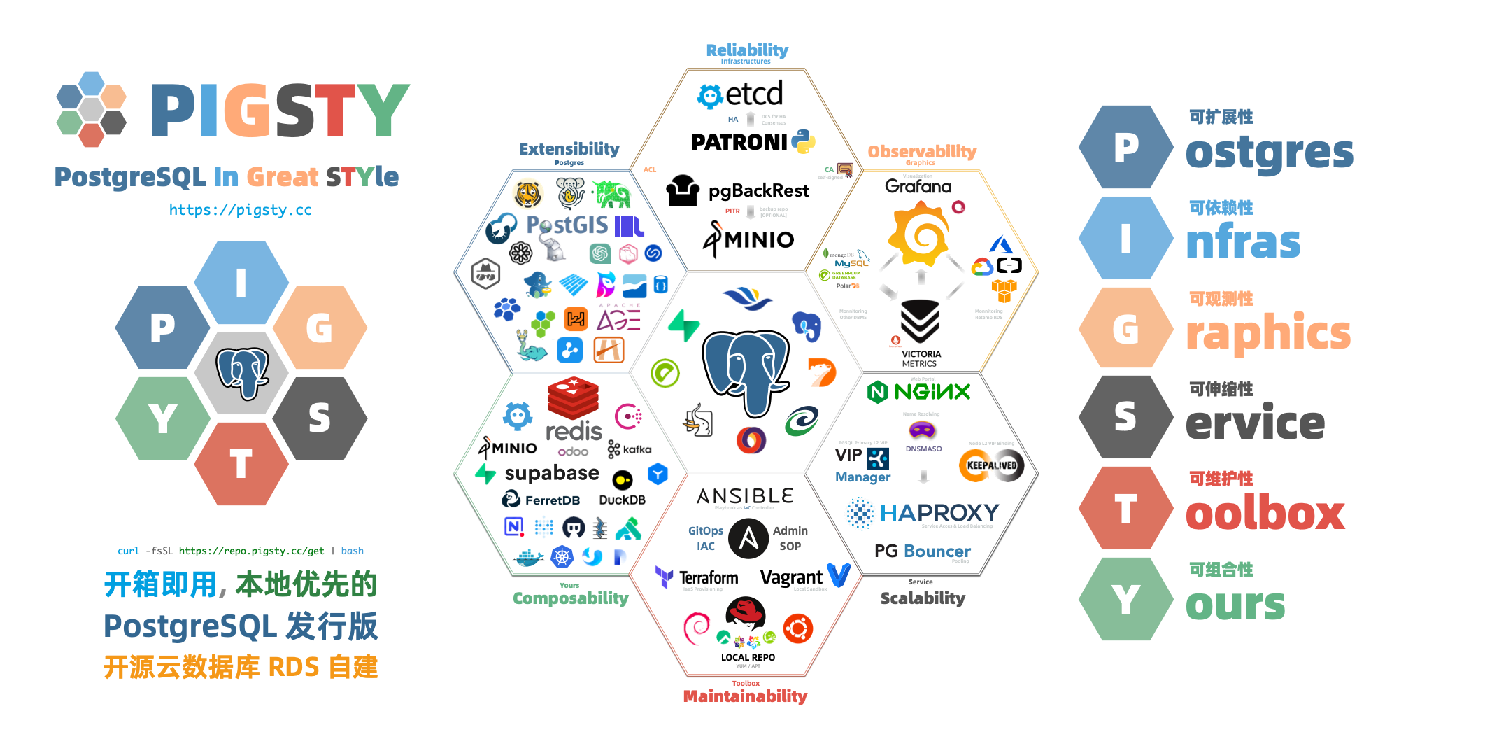 Pigsty是基于 Apache-2.0 开源的自由软件,由热爱 PostgreSQL 的社区成员用热情浇灌