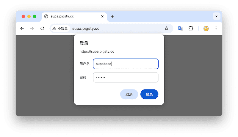 默认的用户名与密码分别是: supabase 与 pigsty。
