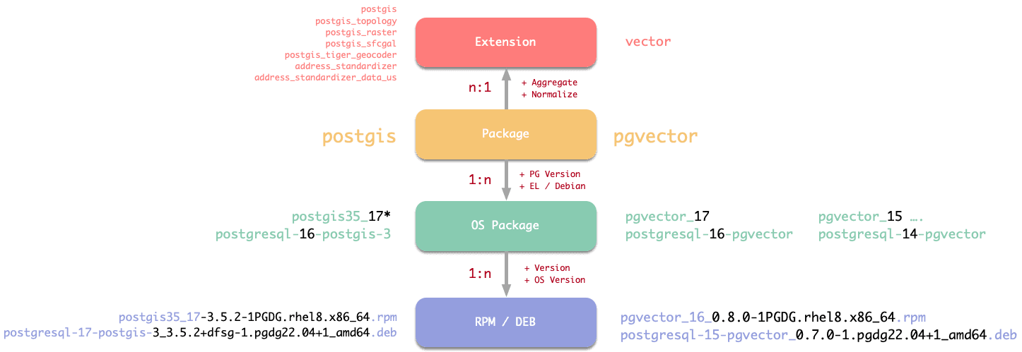 | RPM/DEB | pgvector_17_0.8.0-1PGDG.rhel8.x86_64.rpm | postgresql-17-postgis-3_3.5.2+dfsg-1.pgdg22.04+1_amd64.deb |